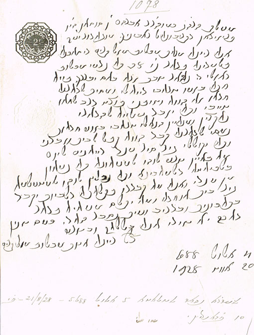 DOCUMENT DU TRIBUNAL RABBINIQUE DE MOGADOR - 1078