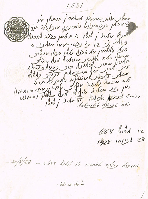 DOCUMENT DU TRIBUNAL RABBINIQUE DE MOGADOR - 1081