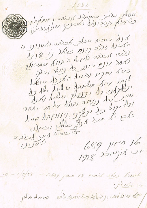 DOCUMENT DU TRIBUNAL RABBINIQUE DE MOGADOR - 1082