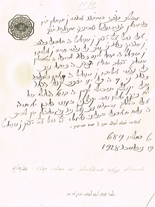 DOCUMENT DU TRIBUNAL RABBINIQUE DE MOGADOR - 1091