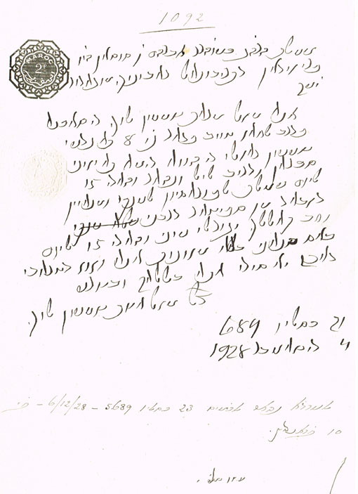 DOCUMENT DU TRIBUNAL RABBINIQUE DE MOGADOR - 1092