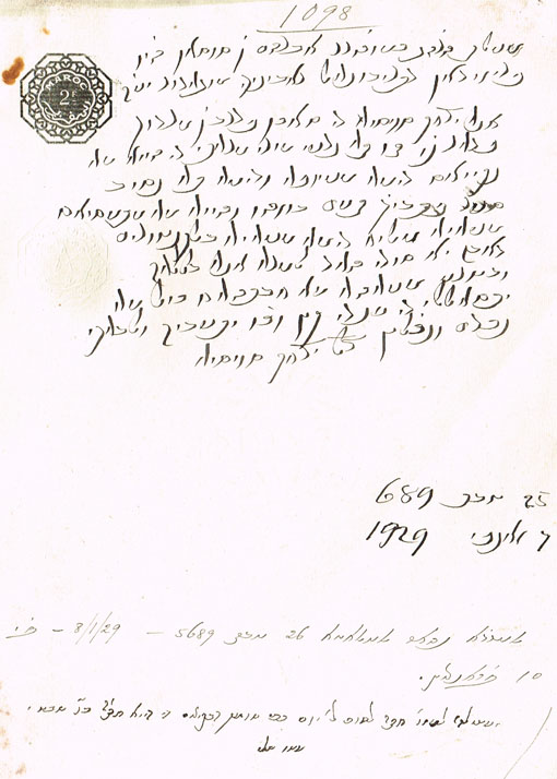 DOCUMENT DU TRIBUNAL RABBINIQUE DE MOGADOR - 1098
