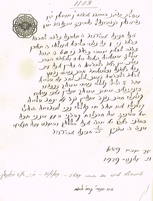 DOCUMENT DU TRIBUNAL RABBINIQUE DE MOGADOR - 1108