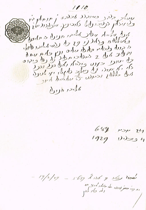 DOCUMENT DU TRIBUNAL RABBINIQUE DE MOGADOR - 1110