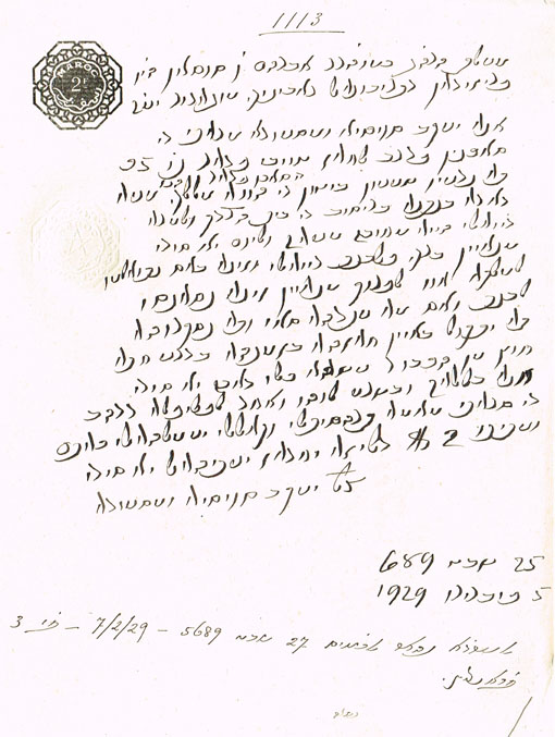 DOCUMENT DU TRIBUNAL RABBINIQUE DE MOGADOR - 1113