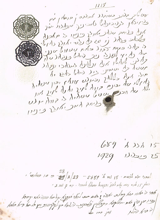 DOCUMENT DU TRIBUNAL RABBINIQUE DE MOGADOR - 1118