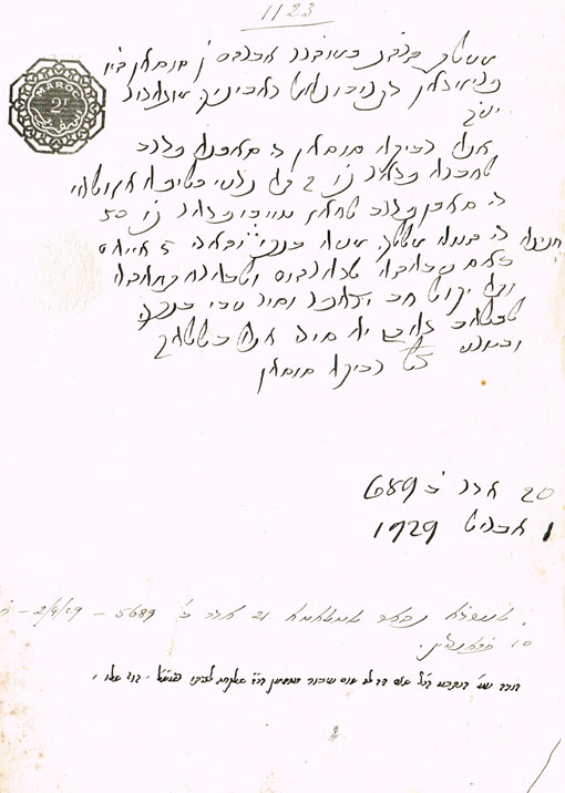 DOCUMENT DU TRIBUNAL RABBINIQUE DE MOGADOR - 1123