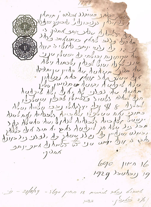 פניה לאברהם ן' סוסאן ראב"ד מוגאדור של צלטאנא אשת יוסף אסריקי ובה תובעת את יוסף בעלה שאינו מפרנס אותה והיא התחתנה עמו רק כדי לפרנס את יתומיה והם סמוכים עליו אבל אינו מפרנס לא אותה ולא את יתומיה והיא סובלת רק למען היתומים לכן דורשת שורת הדין בדבר והיה זה 16 חשון 690 19/11/1929 וחתומה צלטאנא אשת יוסף אסריקי ולמטה כתוב שההזמנה נקבעה ליום חמישי 18 חשון 5690 21/11/29 ועוד כתוב שגירשה