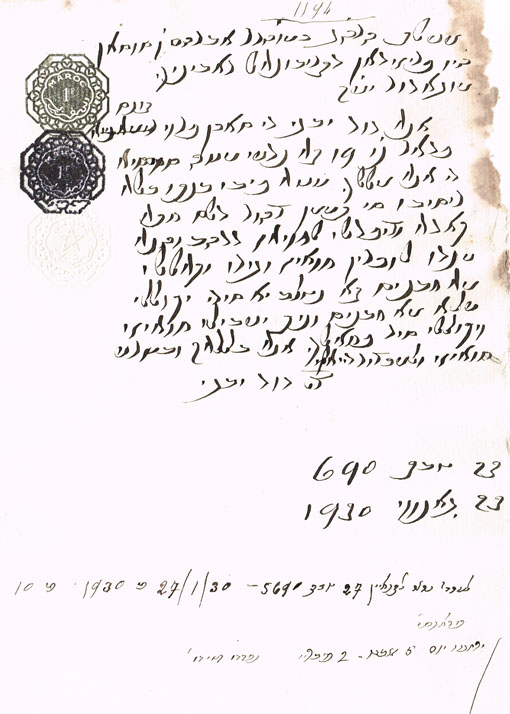 DOCUMENT DU TRIBUNAL RABBINIQUE DE MOGADOR - 1194