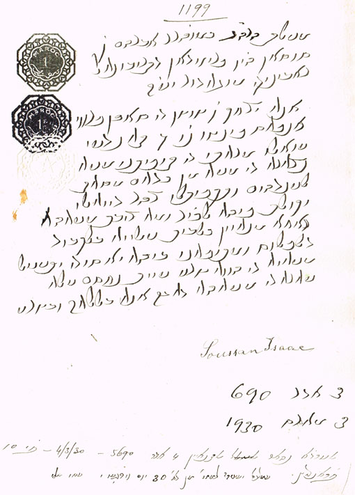DOCUMENT DU TRIBUNAL RABBINIQUE DE MOGADOR - 1199