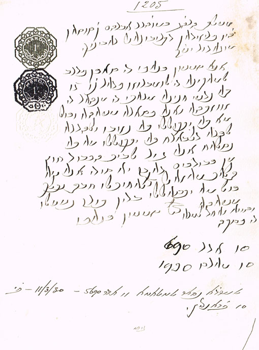 DOCUMENT DU TRIBUNAL RABBINIQUE DE MOGADOR - 1205