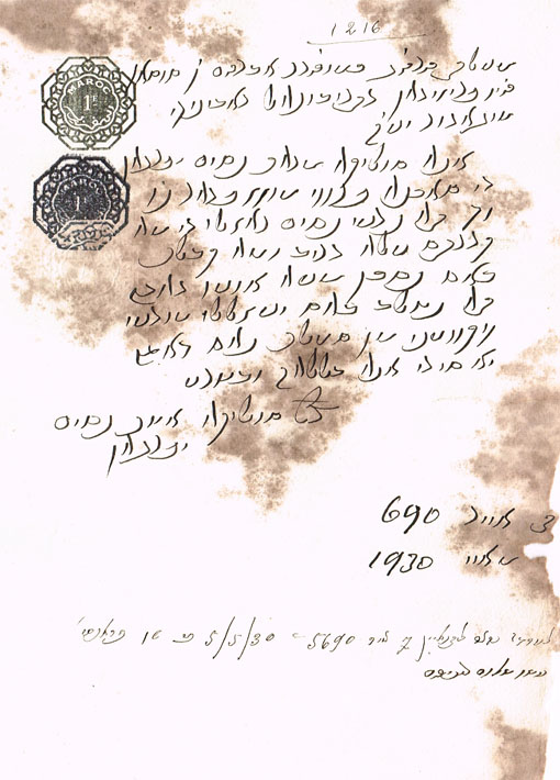 DOCUMENT DU TRIBUNAL RABBINIQUE DE MOGADOR - 1216