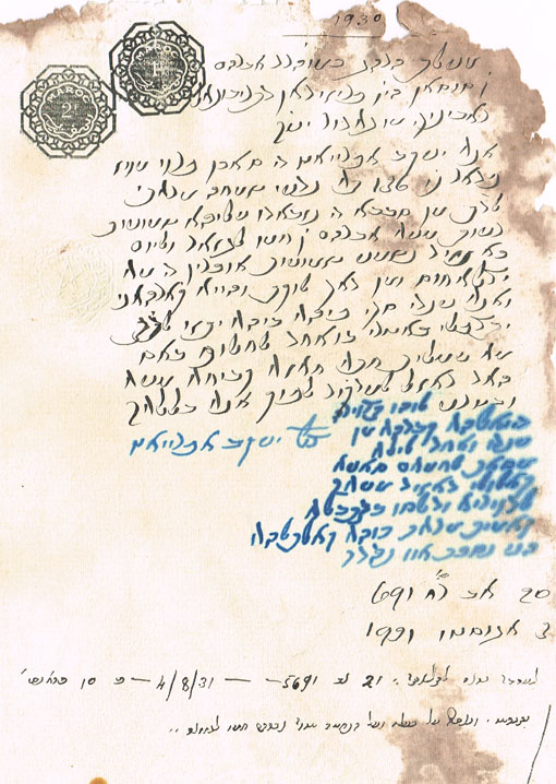 DOCUMENT DU TRIBUNAL RABBINIQUE DE MOGADOR - 1930