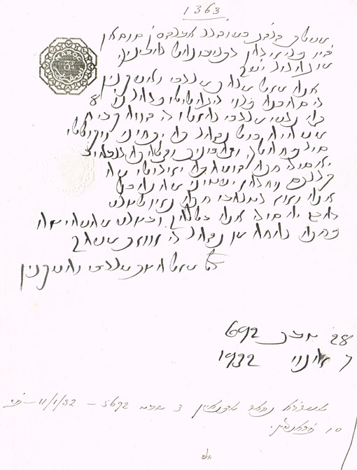 DOCUMENT DU TRIBUNAL RABBINIQUE DE MOGADOR - 1363
