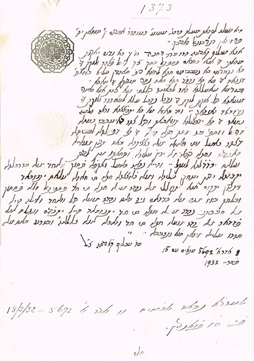 DOCUMENT DU TRIBUNAL RABBINIQUE DE MOGADOR - 1373