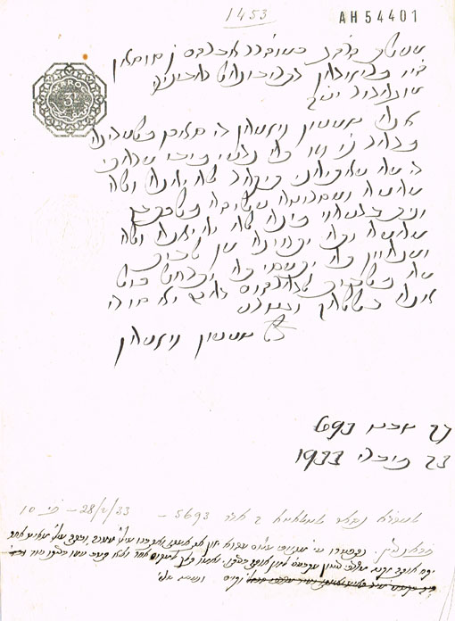 פניה לאברהם ן' סוסאן ראב"ד מוגאדור של שמעון ויזמאן ובה תובע את פיבי אשתו שאינה נותנת לו כבוד לא לו ולא לאמו ומחויבת עליה בכתובה וגם מקללת אותם ומגרשת אותם ולוקחת כל חפצי הבית ומוליכה אותם לבית הוריה ודורש שורת הדין והיה זה 27 שבט 693 23/2/1933 וחתום שמעון ויזמאן ולמטה כתוב ההזמנה יום שלישי 2 אדר 5693 28/2/33 ועוד כתוב התפשרו ביניהם על ידי מתווכי שלום שהוא יזון את אשתו ואת בנו שיש לו ממנה ובתה שיש לה מאיש אחר ייקח אותה זקנה מרדכי ביטון שקיבל על עצמו לזון אותה ואמו תלך למקום אחר ולא תשב בביתו עוד ועשו שלום