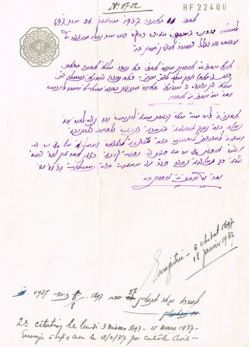 DOCUMENT DU TRIBUNAL RABBINIQUE DE MOGADOR - 1702