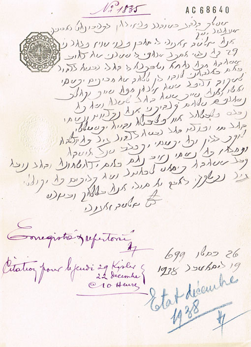 DOCUMENT DU TRIBUNAL RABBINIQUE DE MOGADOR - 1835