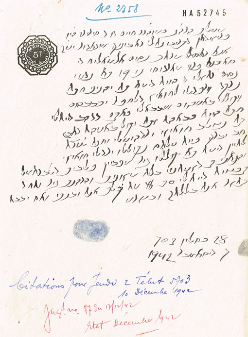 DOCUMENT DU TRIBUNAL RABBINIQUE DE MOGADOR - 2358