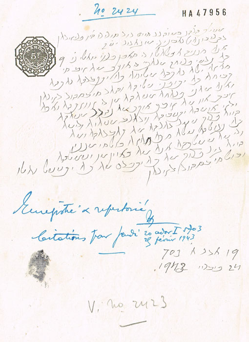 DOCUMENT DU TRIBUNAL RABBINIQUE DE MOGADOR - 2424