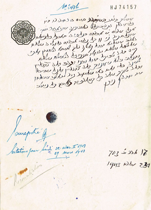 DOCUMENT DU TRIBUNAL RABBINIQUE DE MOGADOR - 2436