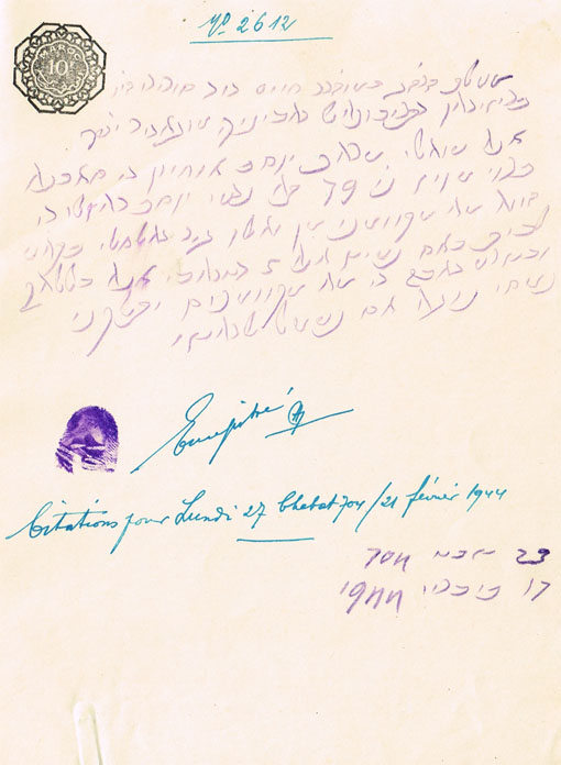 DOCUMENT DU TRIBUNAL RABBINIQUE DE MOGADOR - 2612