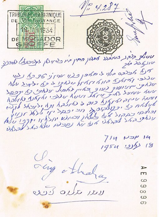 DOCUMENT DU TRIBUNAL RABBINIQUE DE MOGADOR - 4287