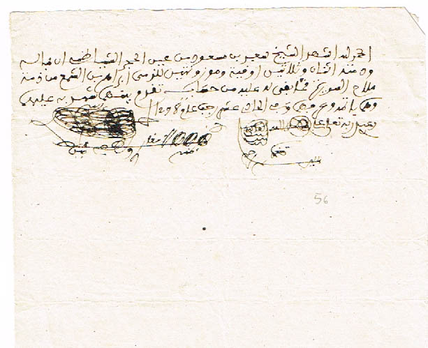 M.Cheikh Said ben Massoud Chiadmi, atteste et reconnu qu'il a une dette vis à vis du commerçant juif M. Braham ben chmaâ de la ville de Essaouira qui relève à 32 Oukias et 2 Mouzats restant de son ancien crédit.