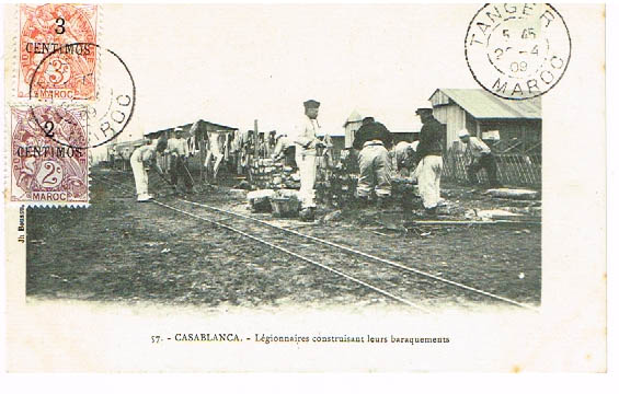 LÉGIONNAIRES CONSTRUISANT LEURS BARAQUEMENTS