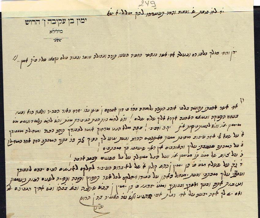 LETTRE ADRESSÉE À DAVID AVRAHAM BENSHIMON