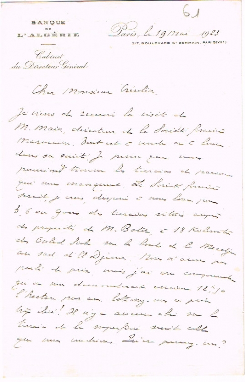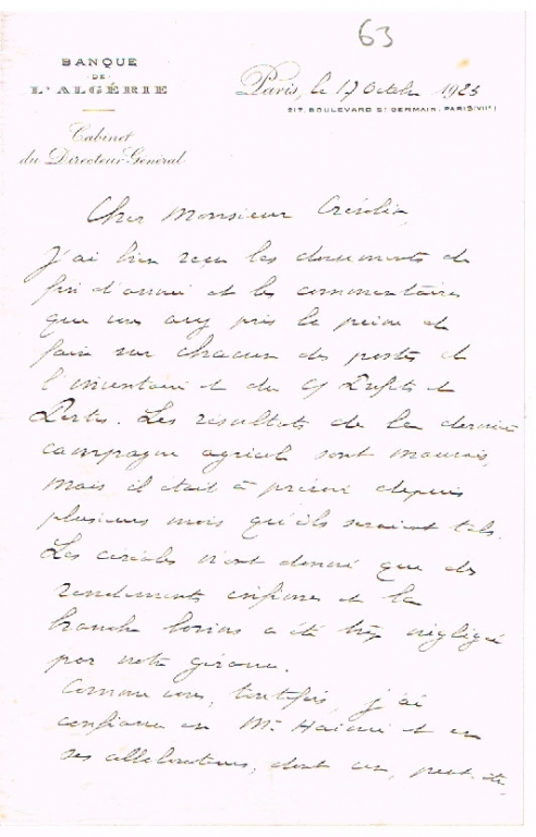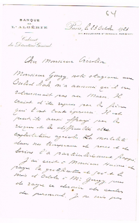 - Lettres de M. Moreau à Crevolin concernant la gestion des domaines Oulad Siah (63) (64) (65) (62) (61) (60)