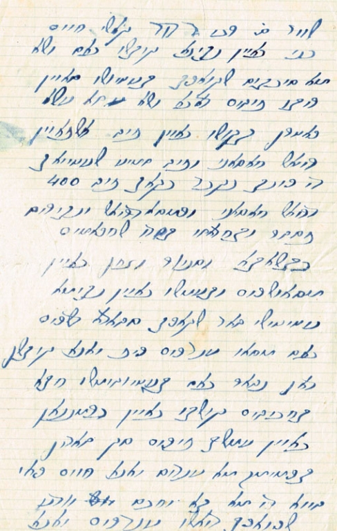 פניה לדוד ובו כותב לו כי בנו חיים אמר לו כי הם לא מצאו את הניירות של הכסף ומבקש לקבל אישור שהניירות הלכו לאיבוד