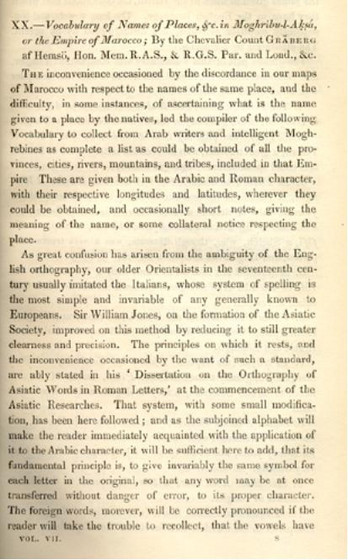 VOCABULARY OF NAMES OF PLACES,ECT, IN MOGHRIBU-L-AKSA,OR THE EMPIRE OF MAROCCO