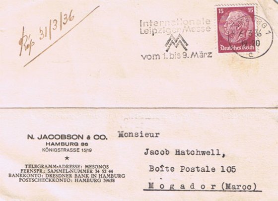 COURRIER ADRESSÉ À MR J. HATCHWELL
