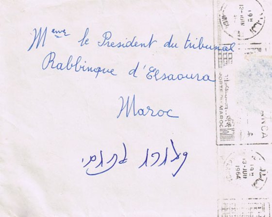 COURRIER ADRESSÉ AU PRÉSIDENT DU TRIBUNAL RABBINIQUE DE ESSAOUIRA
